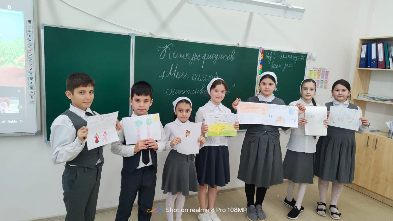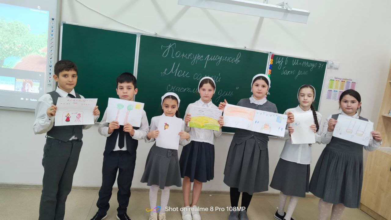 Ученикам предлагается нарисовать рисунок на тему «Мойсамый счастливый день». По окончанию проведенияконкурса лучшие художники награждаются грамотами.