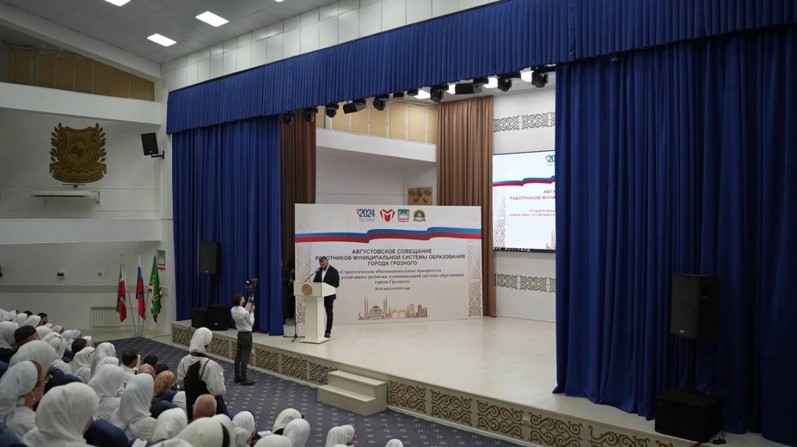 22.08.2025В преддверии нового учебного года 2025-2026 в гимназии № 14 состоялось одно из ключевых событий педагогической жизни столицы — Августовское совещание работников муниципальной системы образования города Грозного. Об этом сообщает столичная Мэрия.В мероприятии приняли участие Мэр города Хас-Магомед Кадыров, Министр образования и науки Чеченской Республики Хож-Бауди Дааев, руководители образовательных организаций и другие почётные гости.Совещание началось с презентационного ролика, в котором были отражены главные достижения столичной системы образования за прошедший учебный год. 2024-2025 учебный год стал для Грозного поистине выдающимся: учащиеся и педагоги продемонстрировали впечатляющие результаты на региональных, федеральных и всероссийских конкурсах и олимпиадах, добившись в общей сложности 21 900 достижений. Особой гордостью стало первое место города среди всех муниципалитетов Чеченской Республики по итогам мотивирующего мониторинга, что подтверждает эффективность системной работы и высокий профессионализм педагогического сообщества столицы.